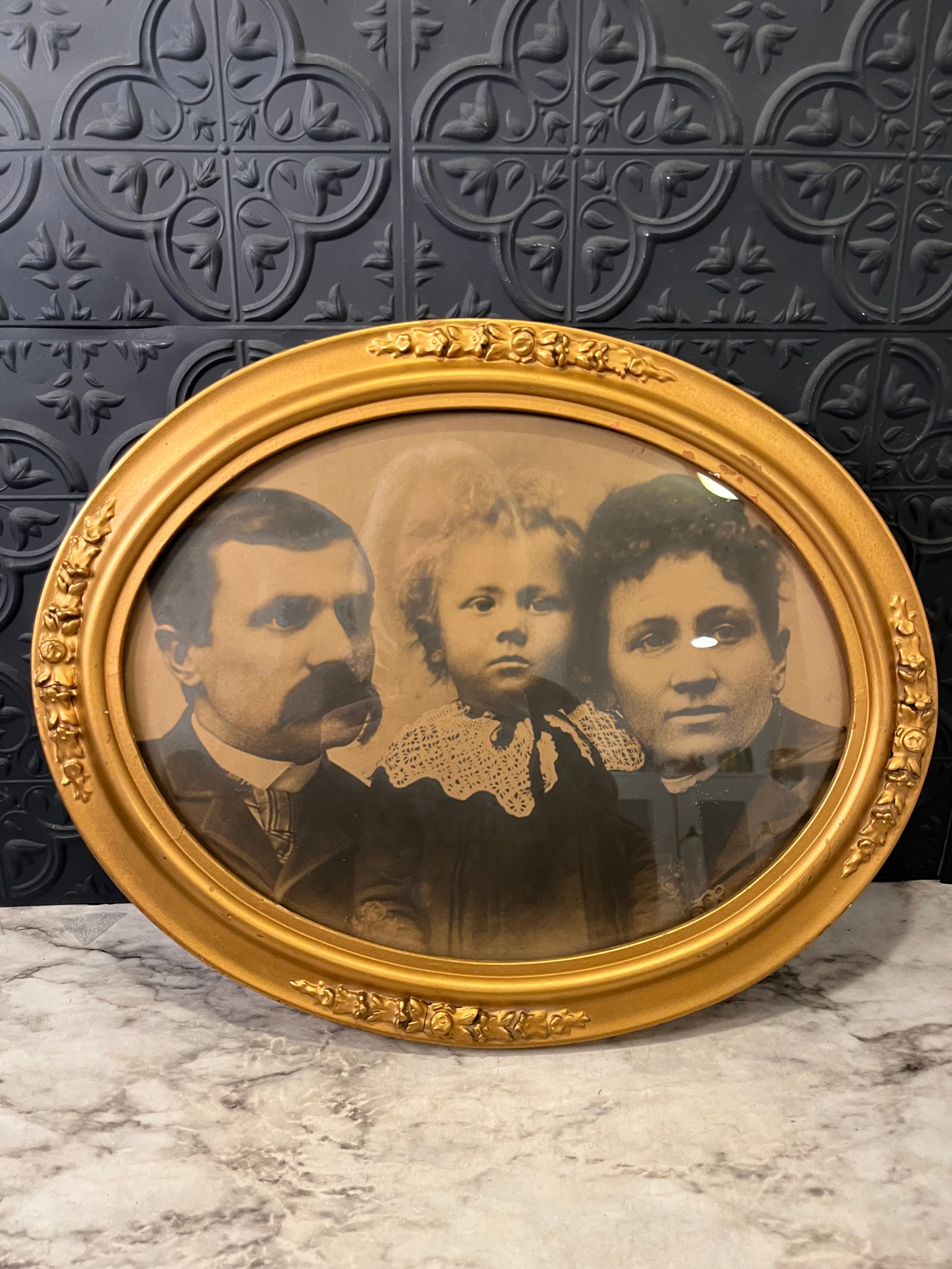 Antique Family Portrait in Oval Gold Frame