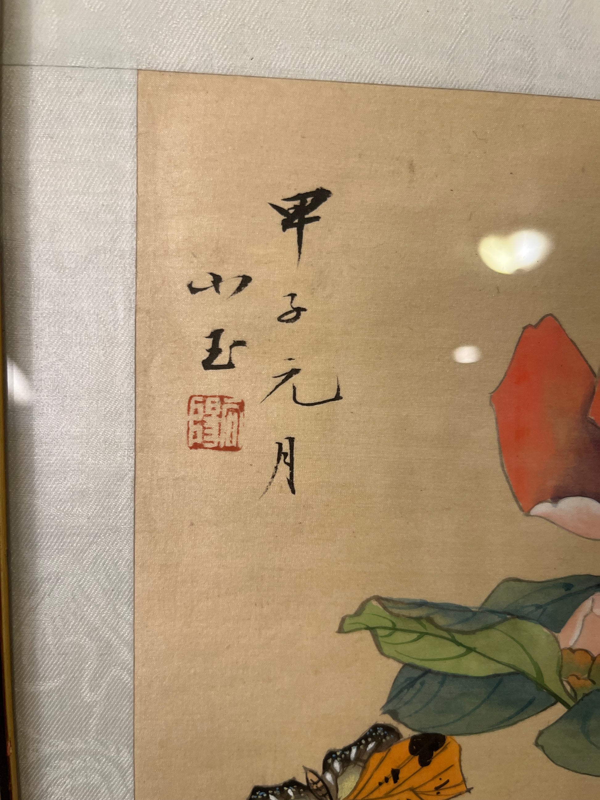 Asian Watercolor with Orange Flowers and Butterfly 2