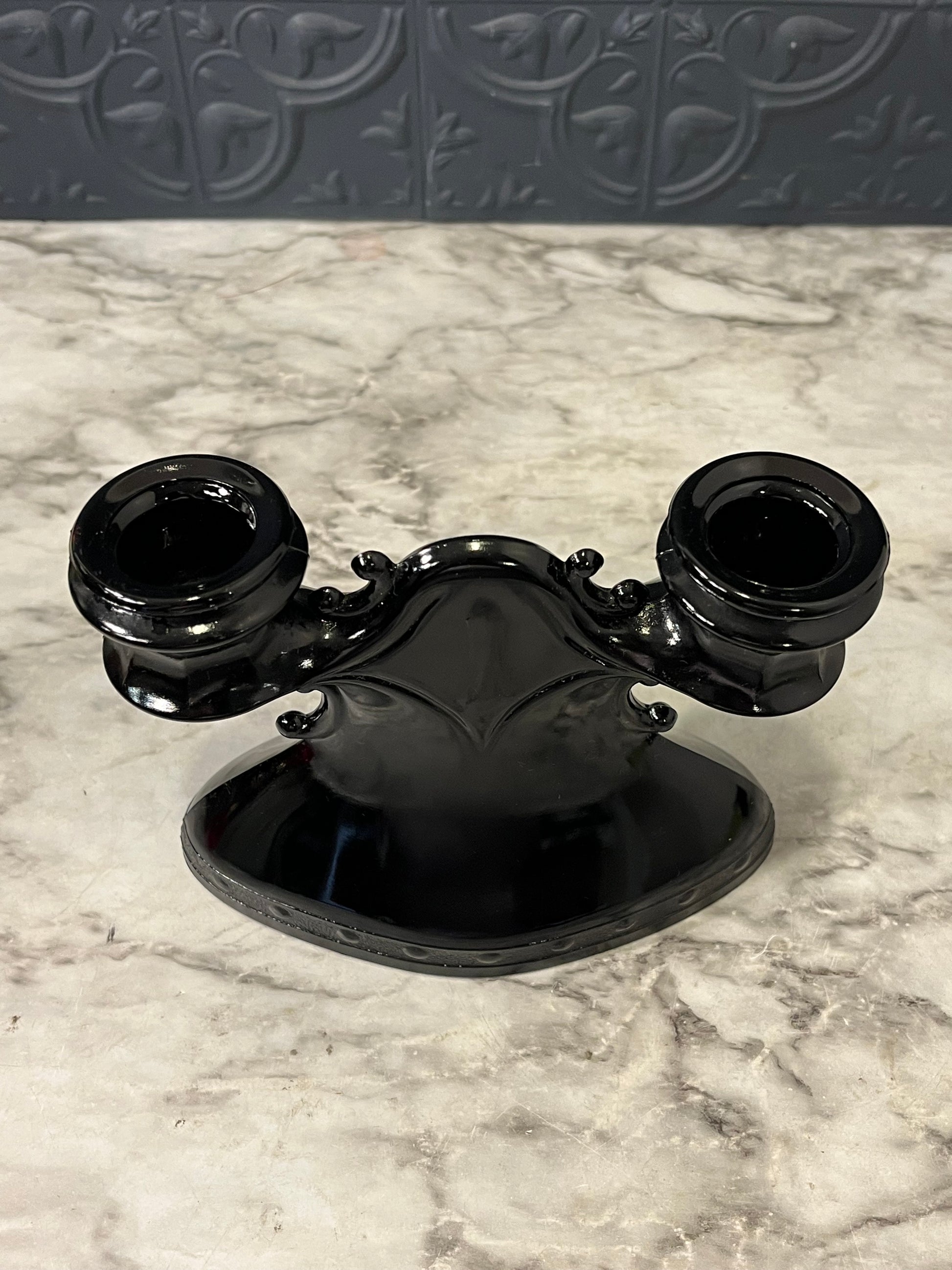 Black glass LE Smith double candle holder - AS IS