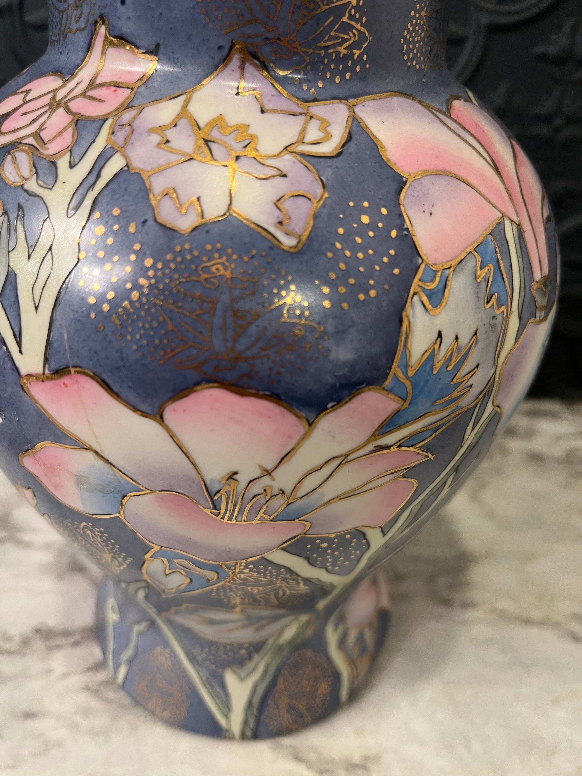 Blue and Pink Hand Painted Ginger Jar