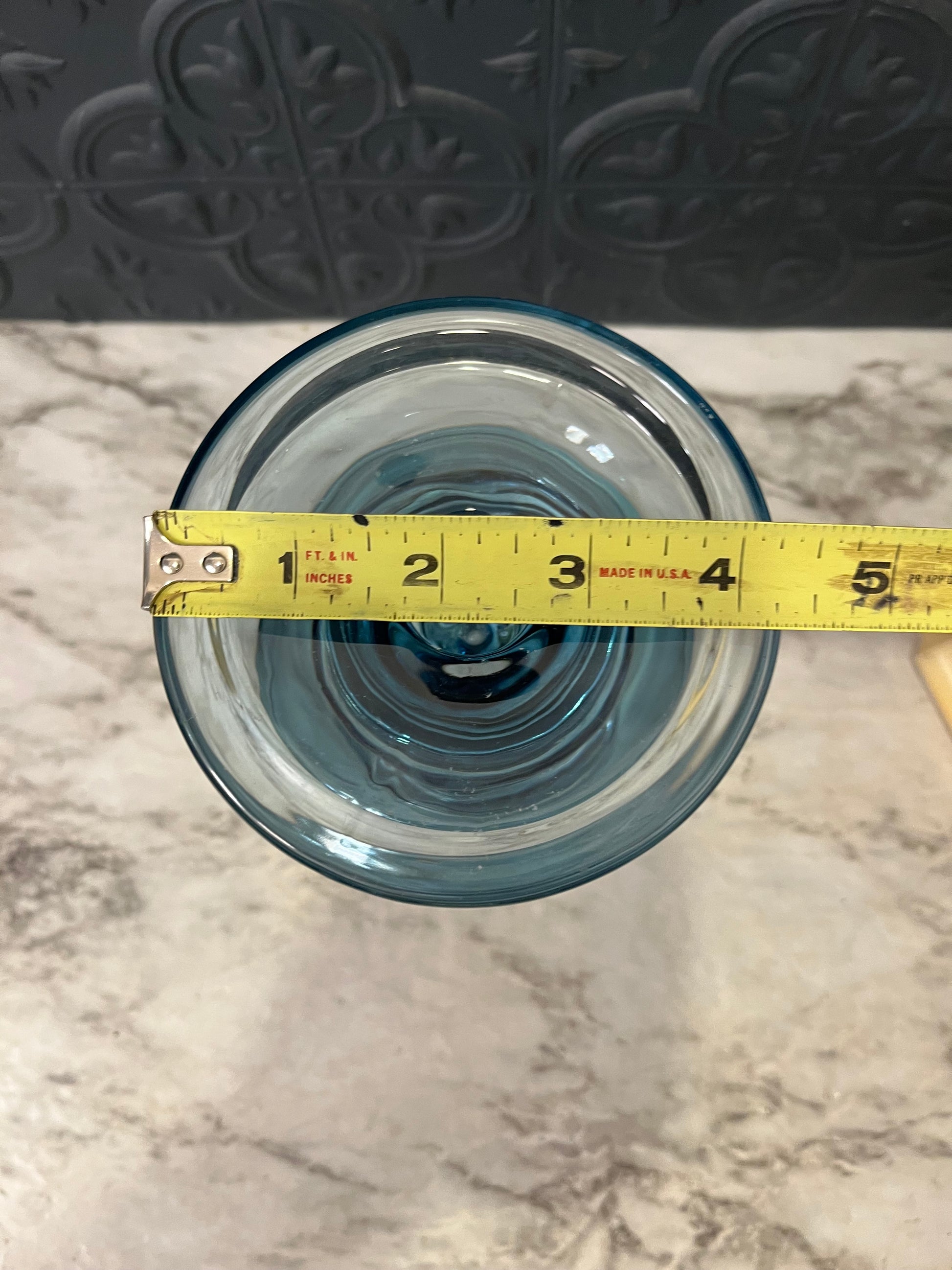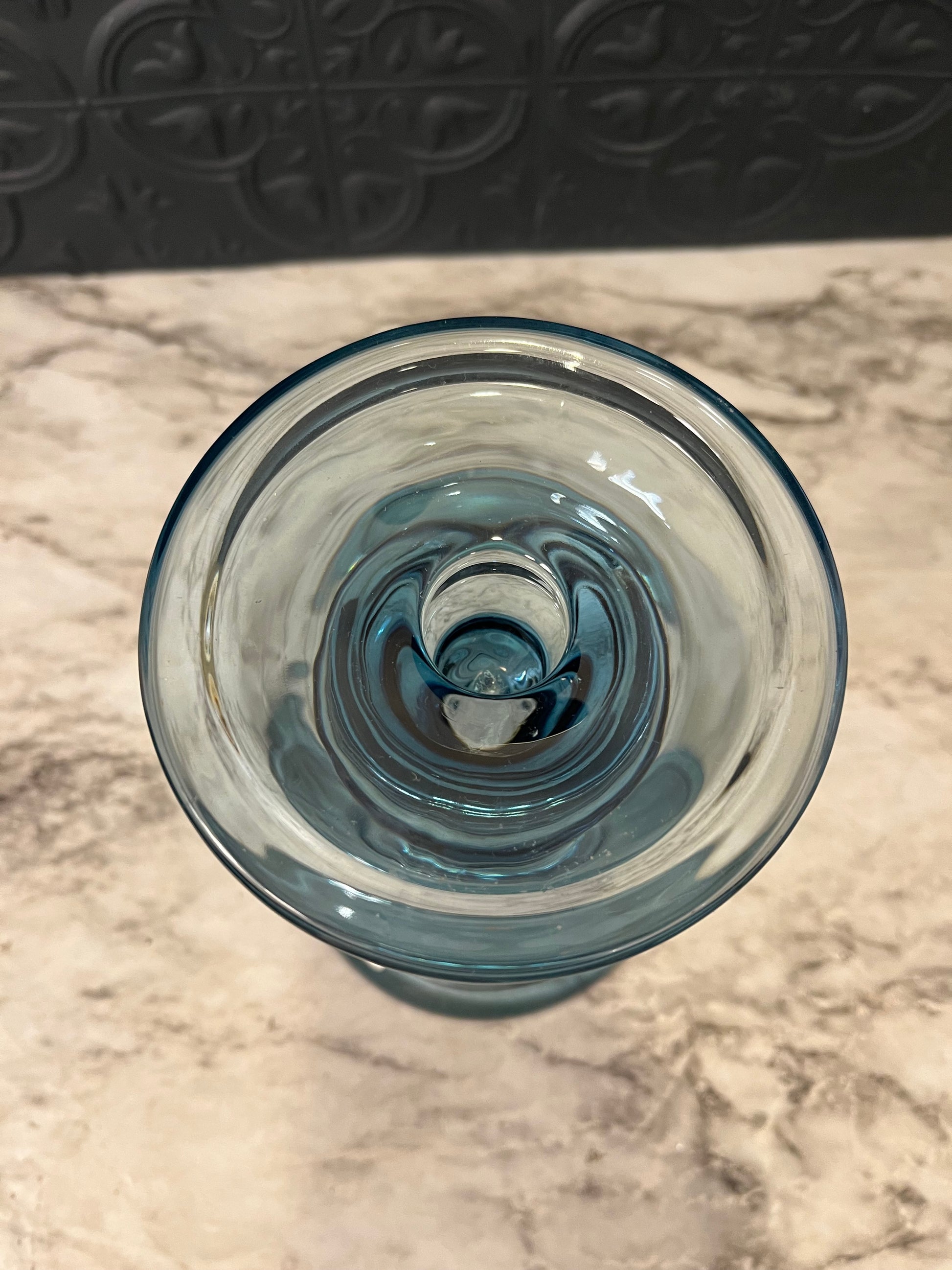 Blue Glass Candle and Pillar Holder 7"