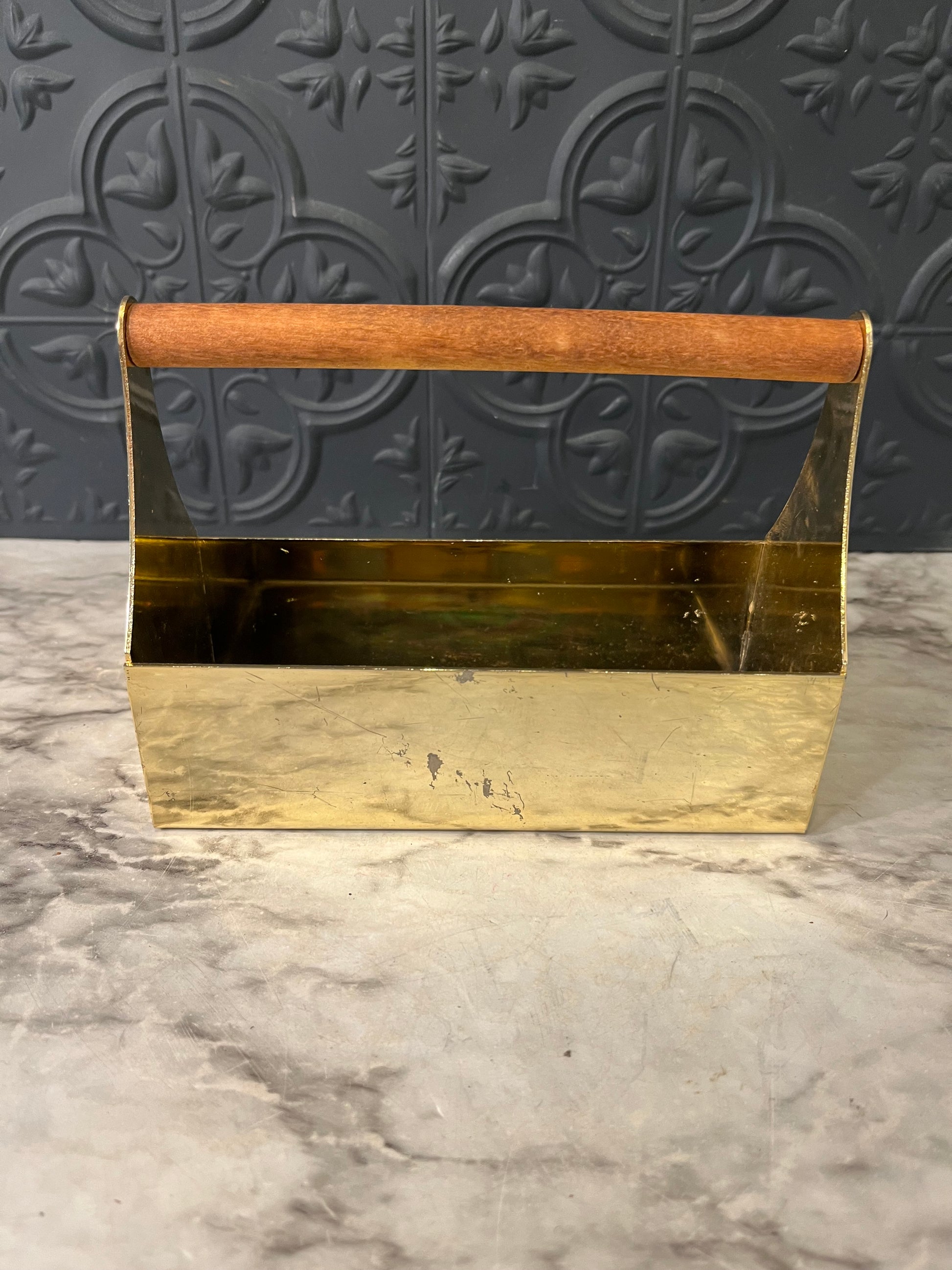 Brass caddy with wood handle