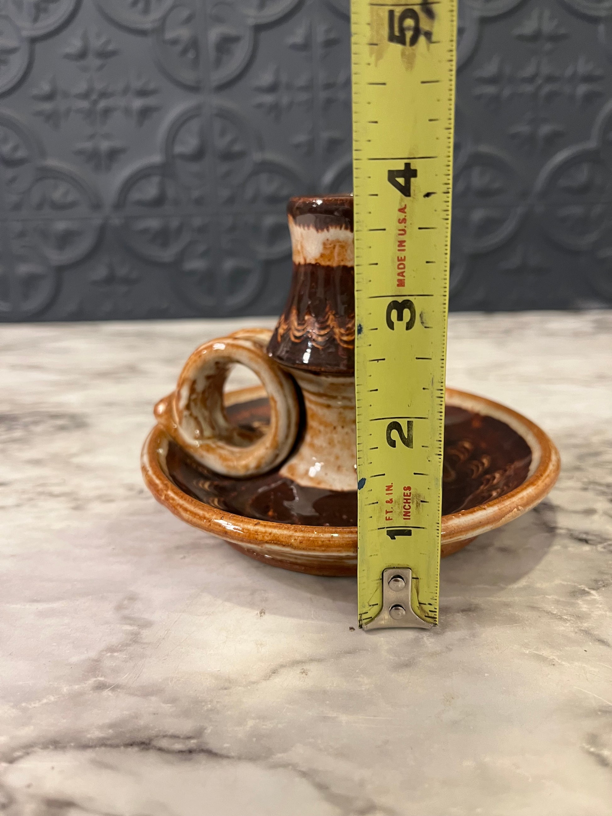 Brown Pottery Chamberstick candle holder
