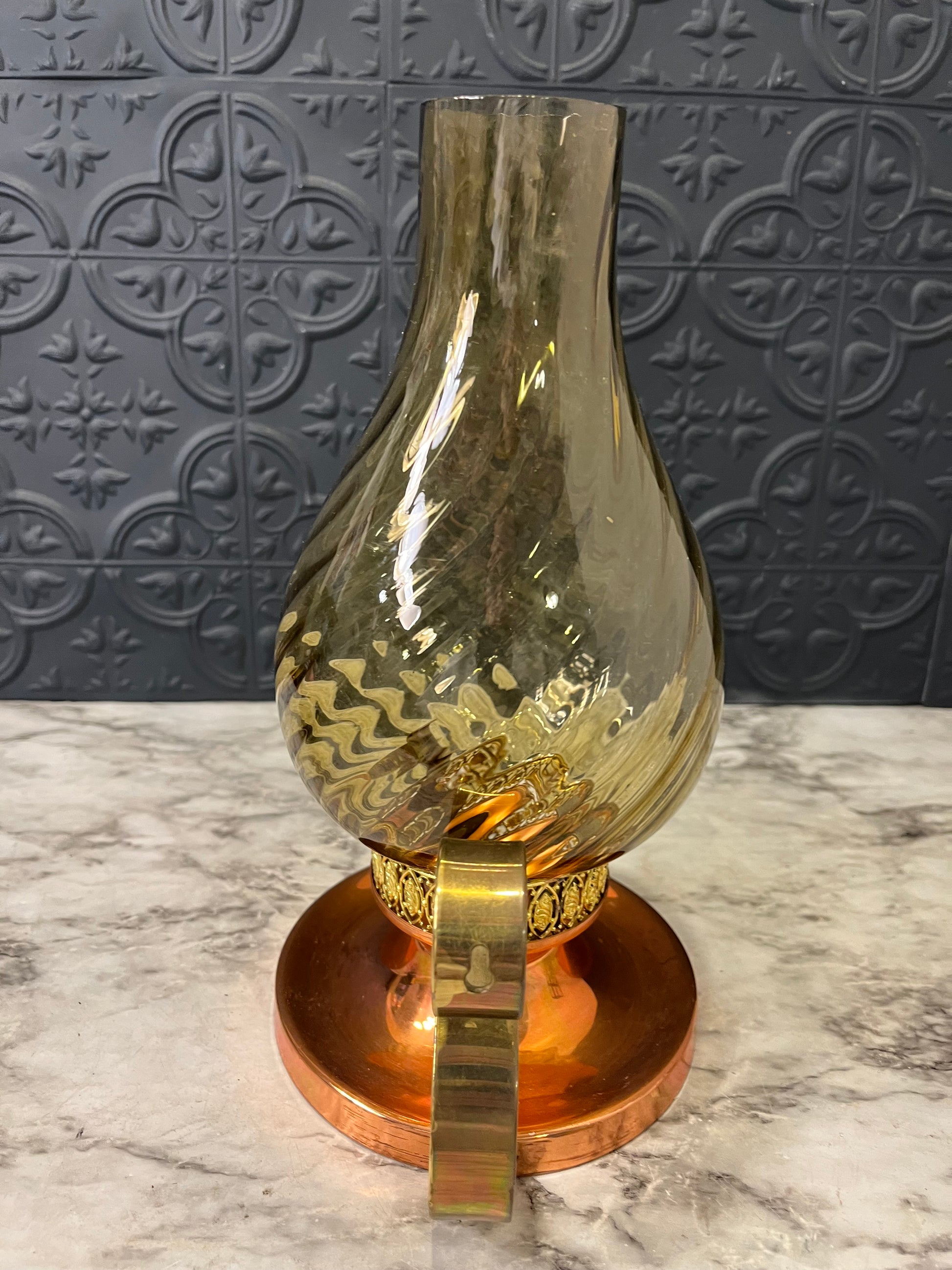 Copper and Brass Hurrican Lamp with Smoke Glass