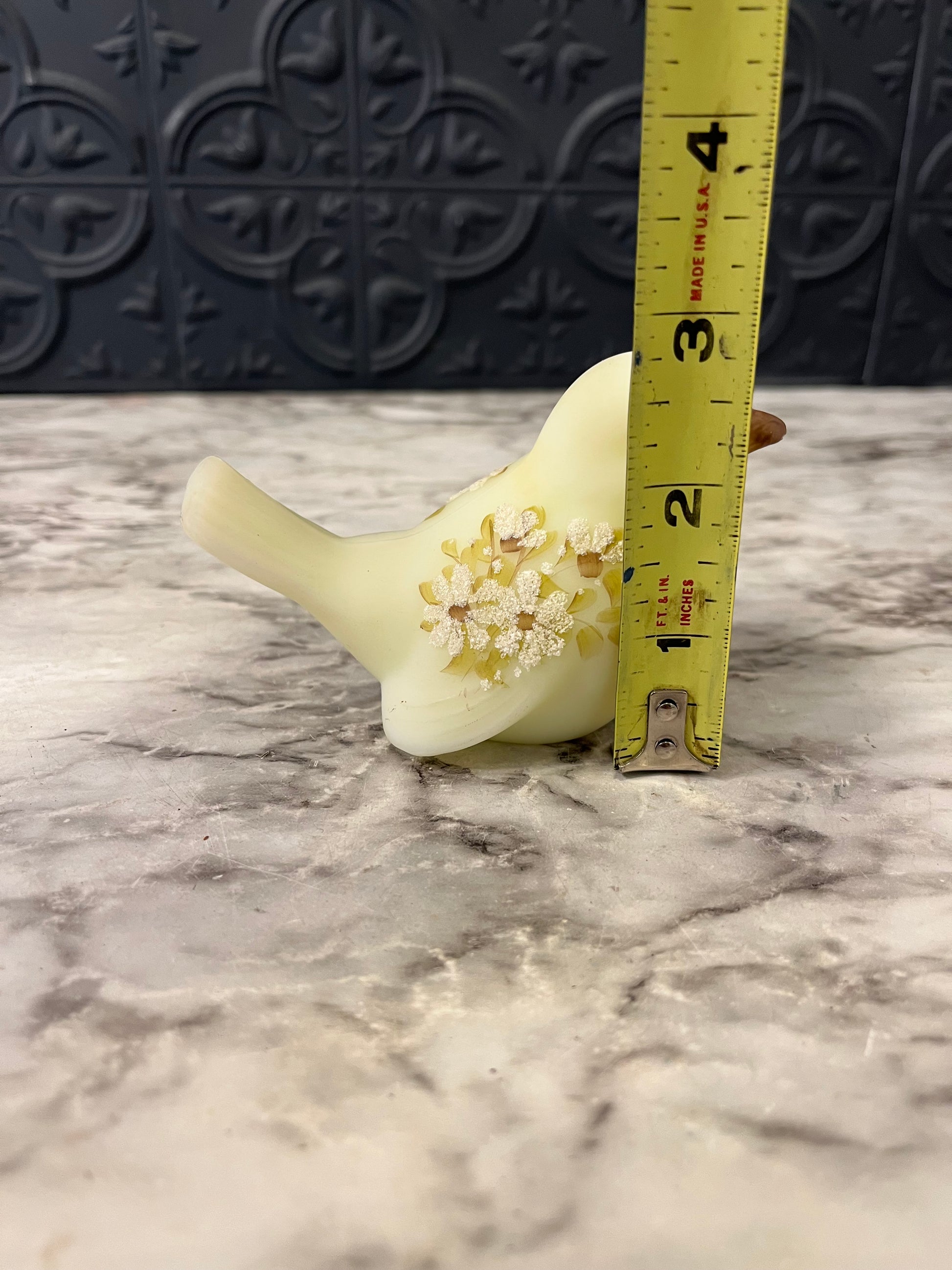 Fenton Custard Satin Glass UV Reactive Songbird