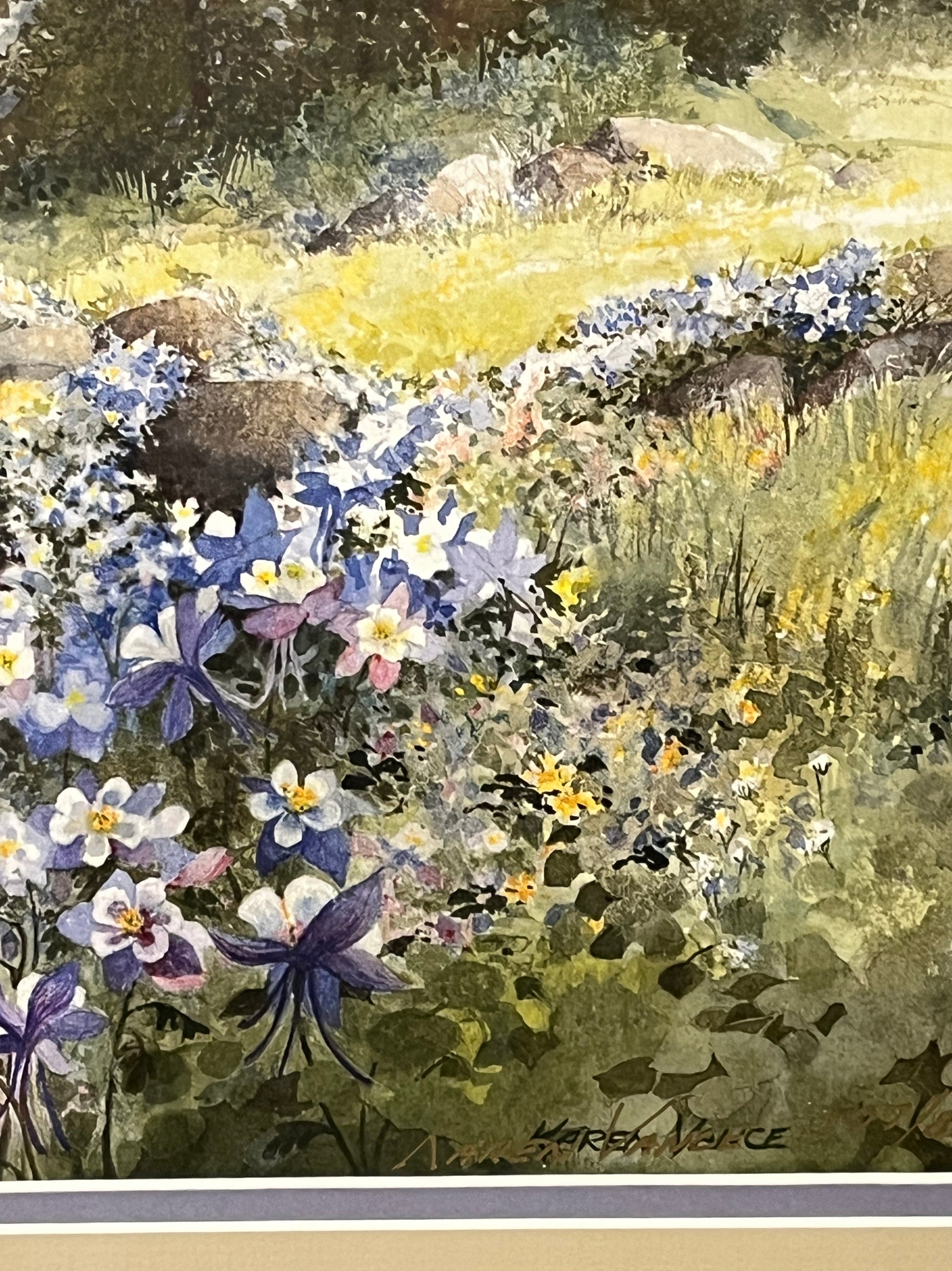 Framed Watercolor of Mountain Wildflowers