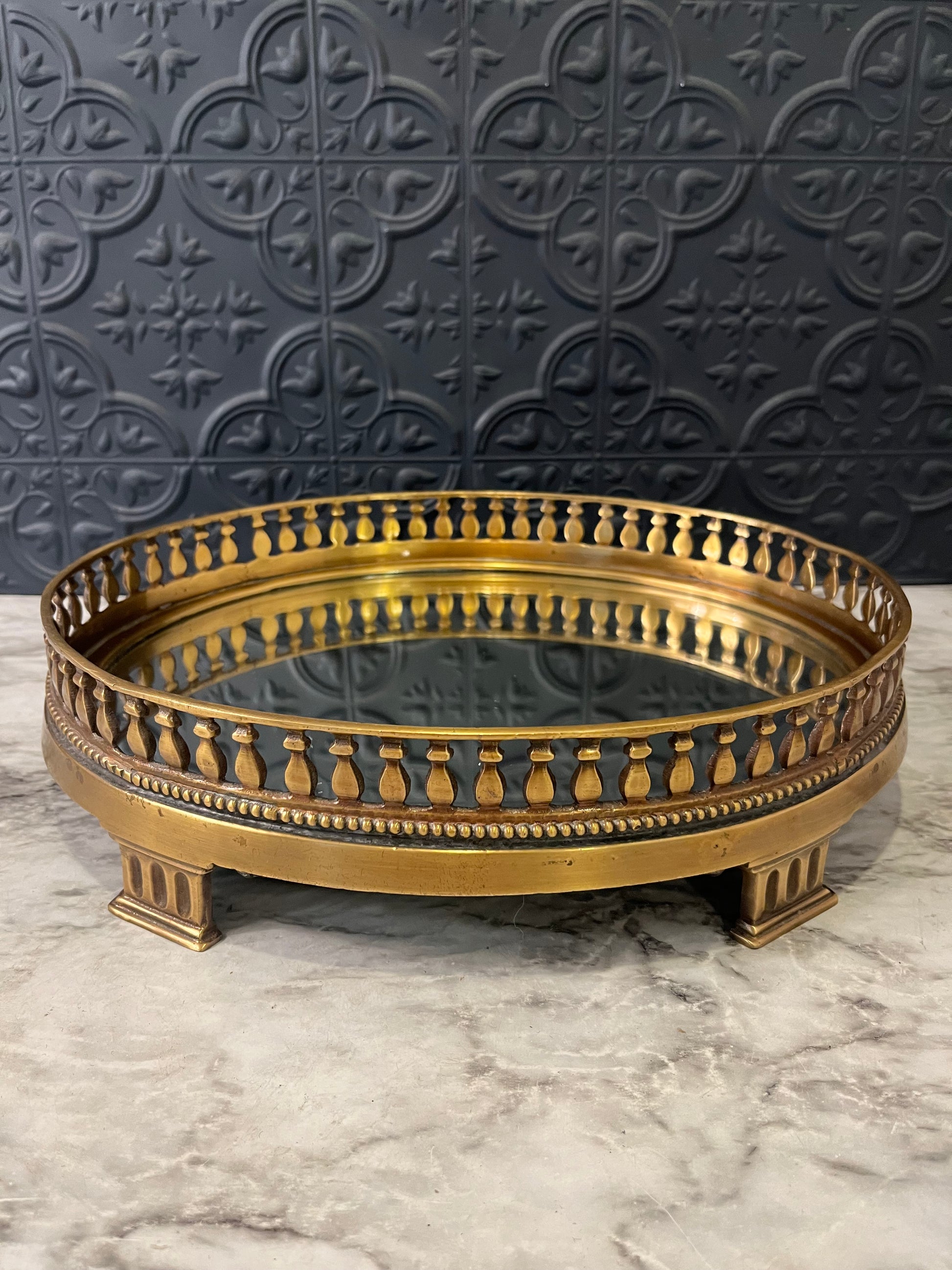 Heavy Brass and Mirror Footed Tray