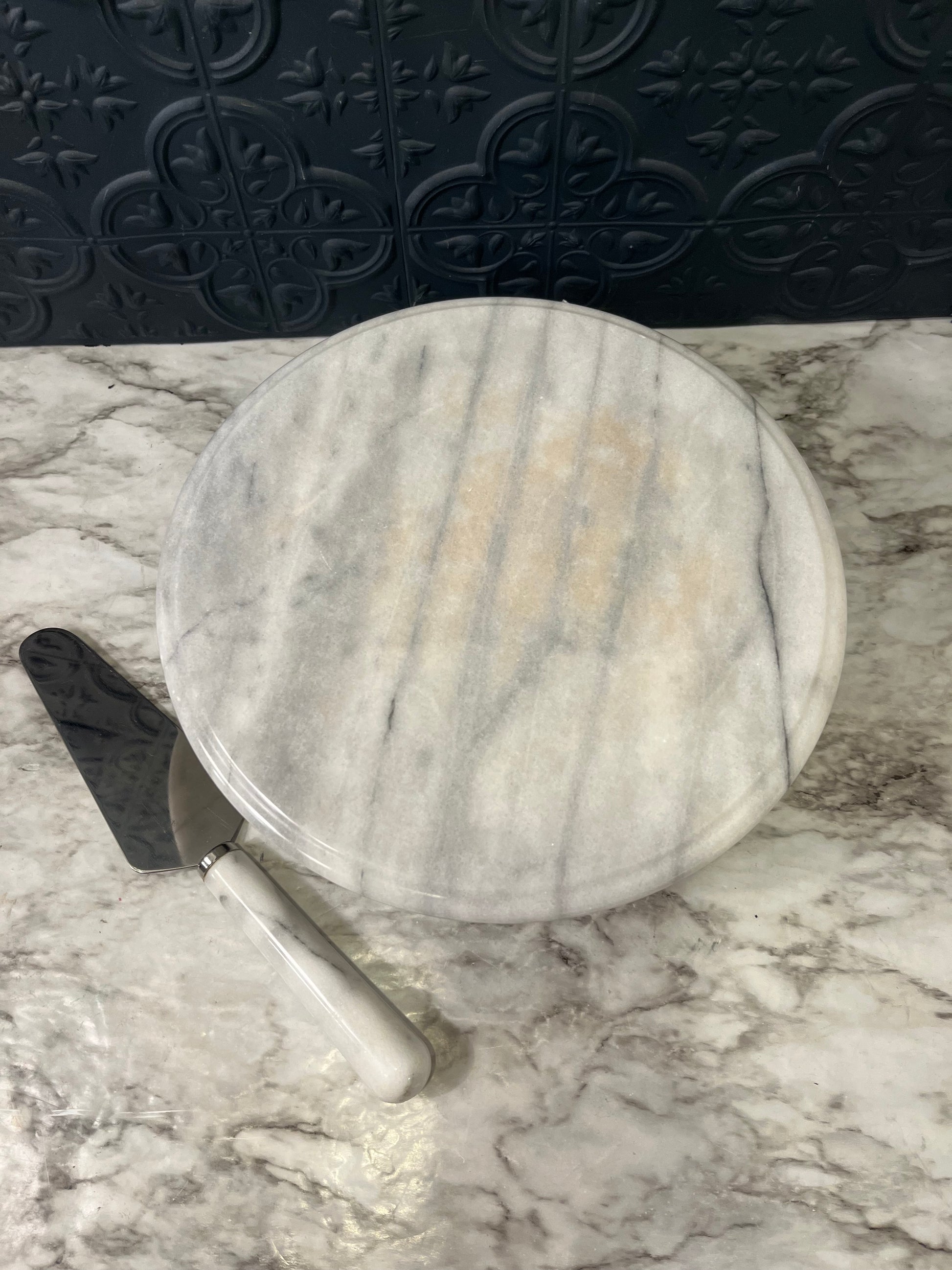 Marble Cake Stand with Cake Knife
