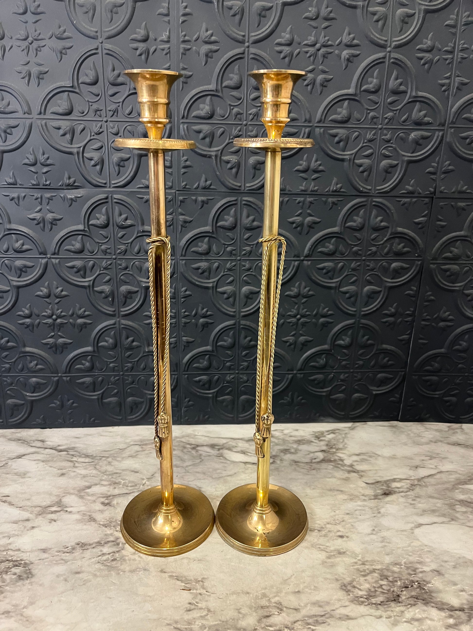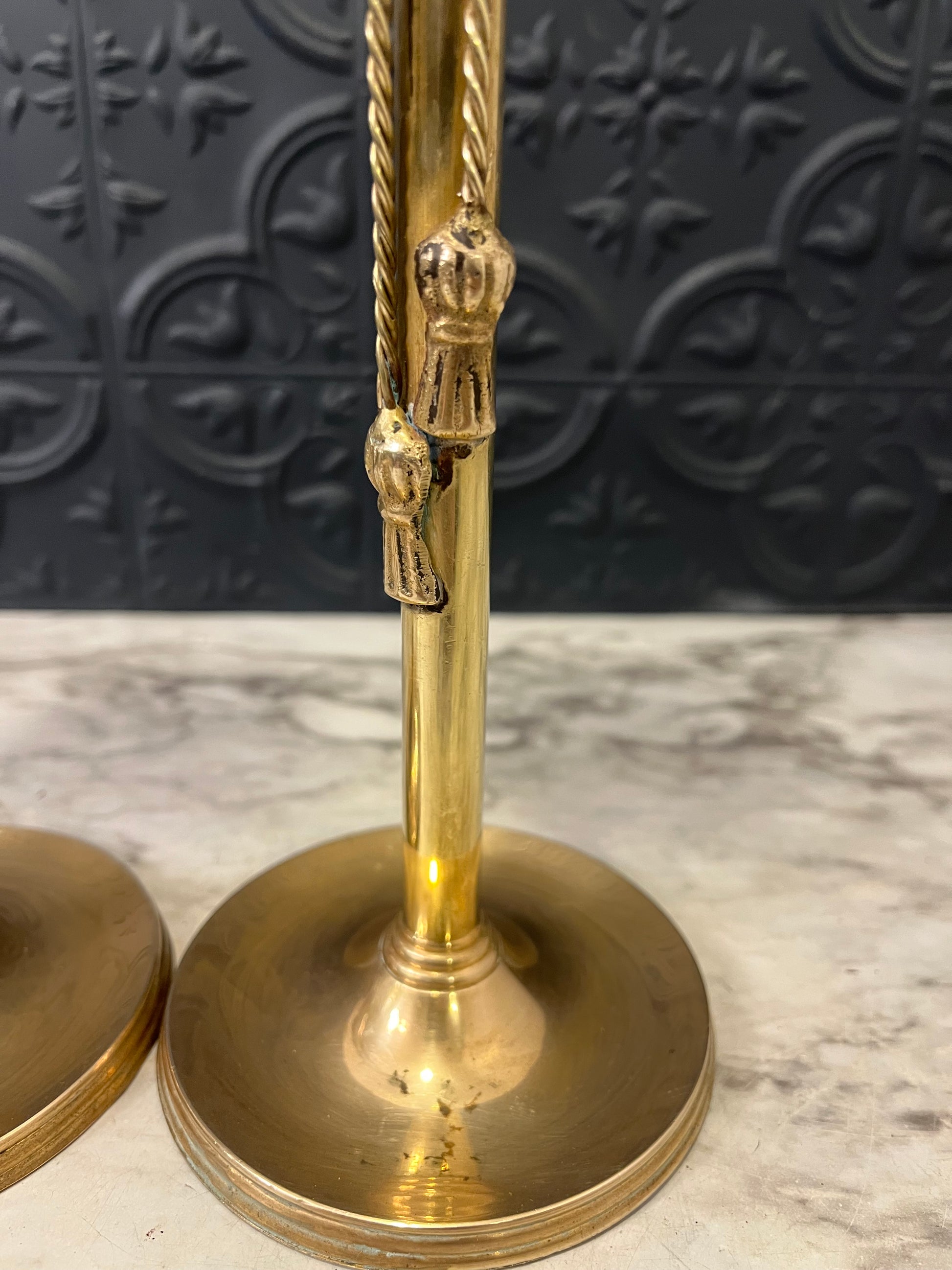 Pair of Brass Candle Sticks with Tassle Detail 16"