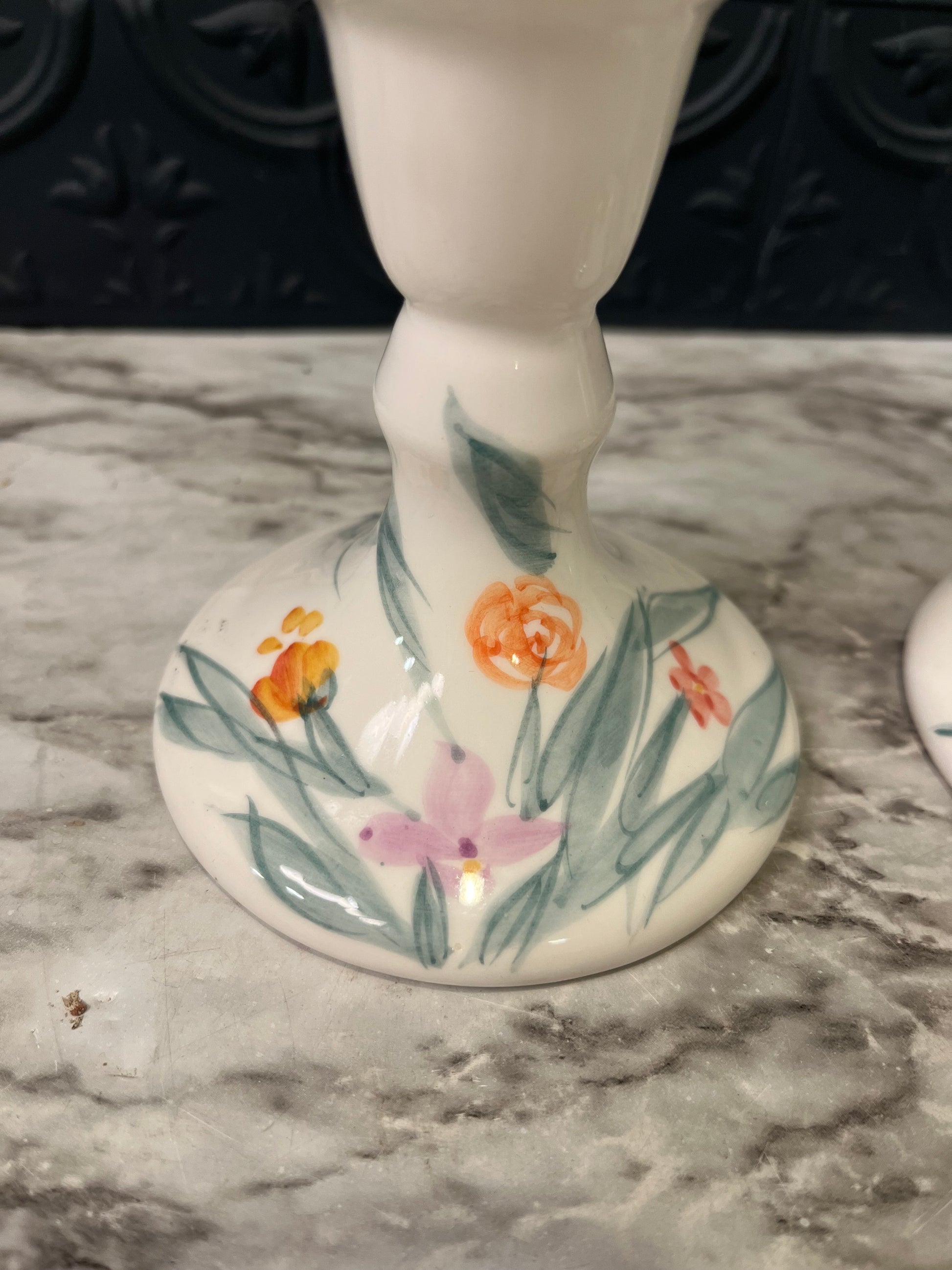 Porcelain set of Candle Holders with Orange and Pink flowers