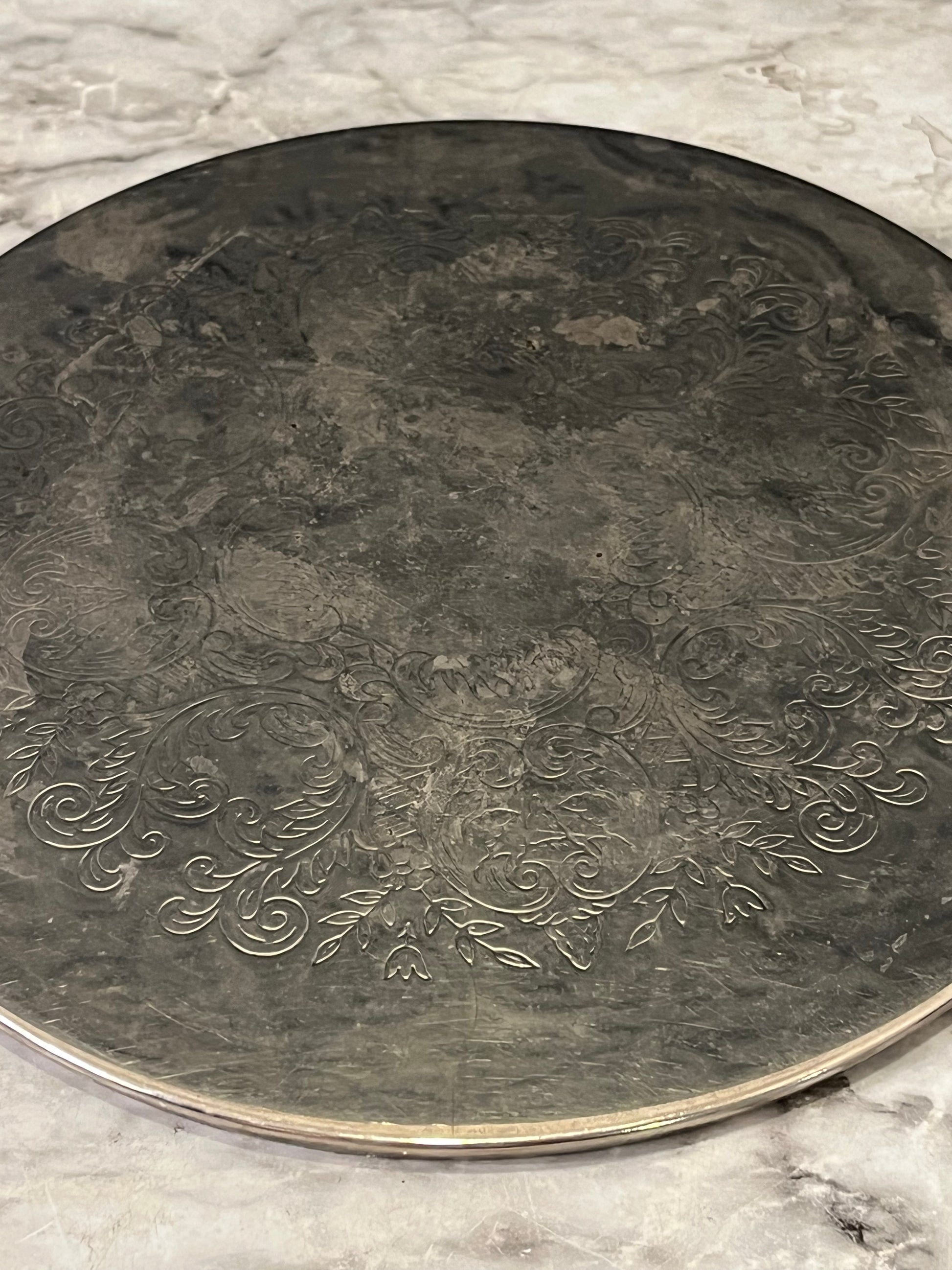 Round Etched Silver plated Trivet