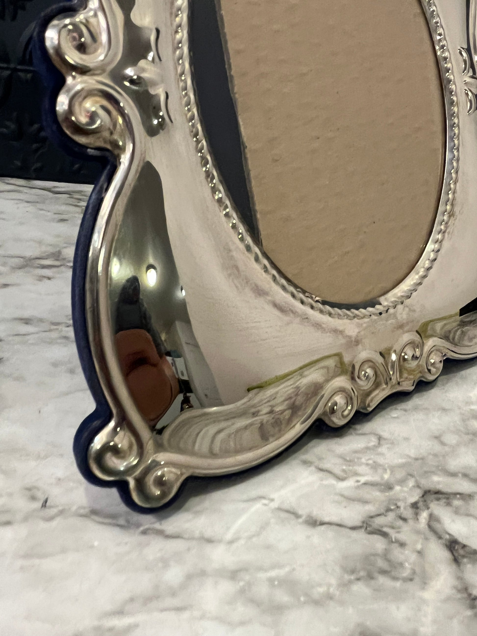 Silver Plate Frame with Blue Velvet Backing